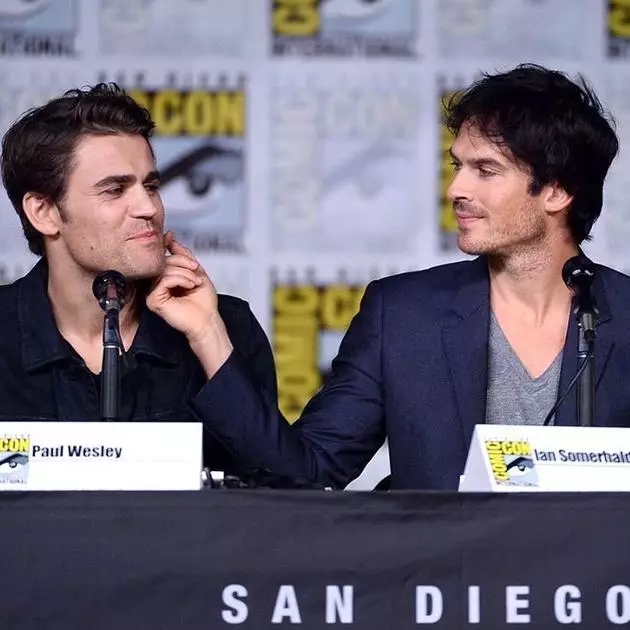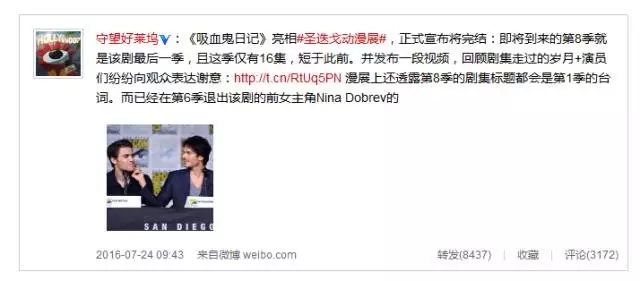 吸血鬼日记结局了吗? ![]() 《吸血鬼日记》剧组亮相圣迭戈动漫展 ![]() 亲兄弟依旧有爱 ![]() 这俩会走到最后吗(是的,已经弃剧的朋友,他俩在一起了) ![]() 戏外大萌和妻子牵手游动漫展