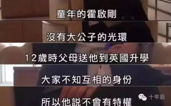 对此,霍启刚曾经一年都没有登过的微博上,维护了妻子的声誉。 婚后两人都格外低调,而今天,这对被称为豪门清流的cp , 用掩藏不住的幸福,打破了一切不实的谣言,并让人徒生艳羡。 2、我不是爱你的身份我只是爱你的人 霍氏家族,是香港的亿万富豪中唯一可以与李嘉诚并肩而立的。霍启刚作为霍家的长房嫡孙,从小就备受重视并且接受着最严格的教育。 他12岁时被送去英国留学,并以全A的成绩考上牛津,还在牛津修完了双学位,毕业后回国又进清华学习普通话和中华文化。 所以在《极速》里听到霍启刚的普通话,不仅不带港味,反而还随了点郭晶晶家乡的口音。 这样环境下成长起来的霍启刚,从小就知道自己身上背负的家族期望,也清醒地知道要赢得外人的尊重,不是靠钱,而是靠能力。 踏入社会后,更是知道以自己的身份,做事要做到百分之两百才能达到别人的期望。 ![]()