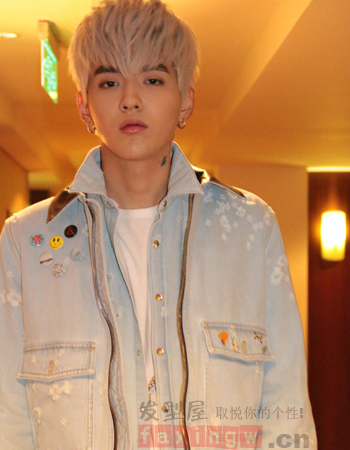 吴亦凡这款发型大胆采用白色染发,头顶高高的蓬松感,看起来给整个人增高了不少,适合长脸的男生哦