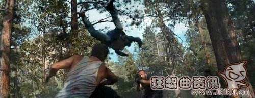 之前的预告片中,有一个镜头,狼女在藏身之处攻击抓捕她的人。电影中直接跳过用一段枪声的留白带过。