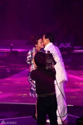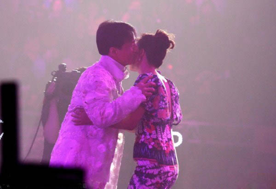 成龙和金喜善当年合拍电影《神话》,两人还因此传出绯闻,不过事後金喜善出面澄清表示自己把成龙视为大哥尊敬,多年来两人也一直维持良好情谊。图为成龙六十大寿演唱会上,两人亲吻。