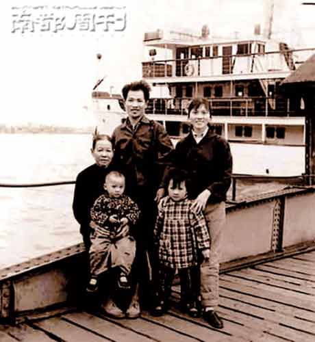 1970年刘嘉玲5岁时(前排右一)与父母、弟弟及奶奶在黄浦江畔拍的照片。