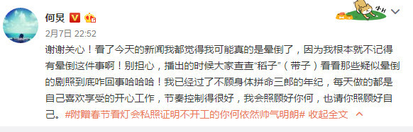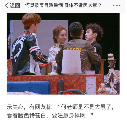 近日有网友爆照称何炅在节目录制现场疑似身体不适而晕倒,对此,连何炅本人都惊动了。