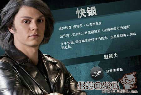 快银够以超过音速的运动速度,在水面及垂直墙壁上奔跑,在短时间内跨越极大的地理位置。快银对双胞胎姐姐旺达保护欲极强。为了守卫战火频繁的家乡小城,他愿意付出任何代价。他同姐姐均为西崔克尔男爵神秘实验的志愿者,并从某种未知能量体中获得了非比寻常的超能力。快银的银幕形象首次出现在《X战警:逆转未来》中,漫威版的快银最早亮相于《美国队长2》的片尾彩蛋,并在《复联2》正式登场。