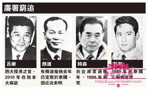 四大探长的最后一位是颜雄,此人的最后职务是油麻地警署的探长,于1977年1月24日受到廉署的通缉,但此前他也已经外逃,目前定居在泰国。