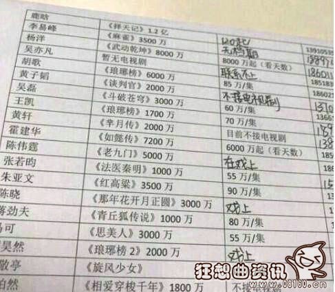 前几天,一张“男演员片酬表”被疯传,一线小鲜肉的片酬价格被昭告天下。其中,鹿晗凭《择天记》1.2亿元片酬拔得头筹,成为最贵小鲜肉,这个价格是李易峰在《麻雀》3500万片酬的3.4倍,一时间引发网友热议。刚在《大唐荣耀》成为焦点IP的任嘉伦刚800万,鹿晗是他的15倍之多。