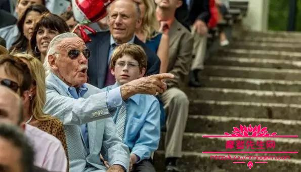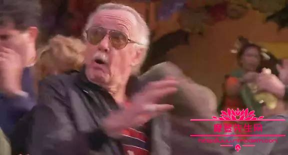 2014年 《银河护卫队》 在火箭浣熊吐槽山达尔星人的主观镜头中,最后一位出场的便是眉飞色舞地勾搭小美眉的斯坦·李。不过,导演詹姆斯·冈透露,他原本准备让老爷子“惨死”,好在有漫威的阻止,老爷子总算逃过一劫。如果这个提议成真,《银河护卫队》这段大概是他职业生涯中最悲惨的镜头了。小编真有点不忍心呢! ![]()