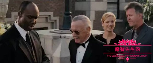 2007年 《神奇四侠2》 老爷子在参加理查德和斯道姆的婚礼时,一本正经地介绍自己:“I’m Stan Lee.”保安无情地撵走他,并告知他不在邀请名单上。老爷子第一次以本名出演电影就惨遭此待遇,单就这一个镜头,就足够小编二刷了,嘻嘻~ ![]()