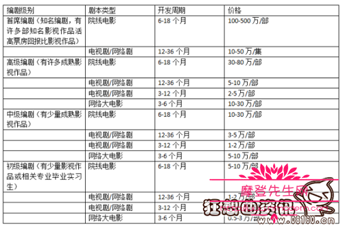 通常以特定的编剧的价格或特定的剧本进行估价,则包含考虑市场因素的方方面面了。