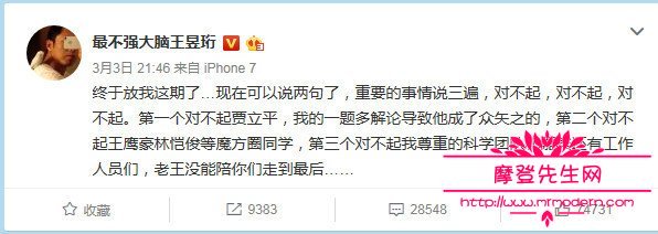 ![]() 而且由于前面一轮的中国赛已输掉了一场,于是Dr.魏更是表达了自己的反对意见:“今天是PK赛,比的是速度,仅仅正确率是不够的。如果这一场失败了,中国队就输了。”但后来,王昱珩依然凭着9分多钟就完成挑战,放弃了复查的机会。对此,Dr.魏霸气地表示道:“耍酷可以,但输了我就掐死他!”由此,Dr.魏不但帅气有才华,还有着股霸道总裁的霸气泄露啊有木有。虽然在此前,网友们都对魏坤琳与小四孰对孰错都争议纷纷的,但他对科学的执着的态度,对真理审判的原则和争取为国取得荣耀的心是值得我们尊敬的。 在这样的问题上王昱珩行为是对的,孟非也是对的,魏坤琳也是对的。