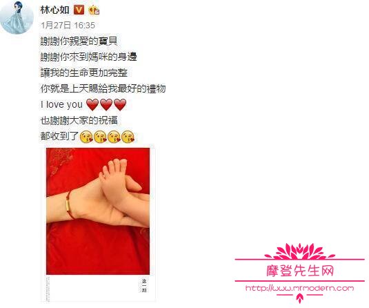 林心如原本预产期是1月底,但她选择了提前到6号剖腹,霍建华也为此从北京赶回台湾陪产。选择1月6日产下女儿,又是6斤6两,真的很吉利!