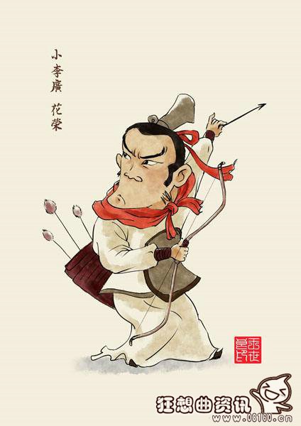 水浒中对花荣描述道:齿白唇红双眼俊,两眉入鬓常清,细腰宽膀似猿形。能骑乖劣马,爱放海东青。百步穿杨神臂健,弓开秋月分明,雕翎箭发进寒星。人称小李广,将种是花荣。