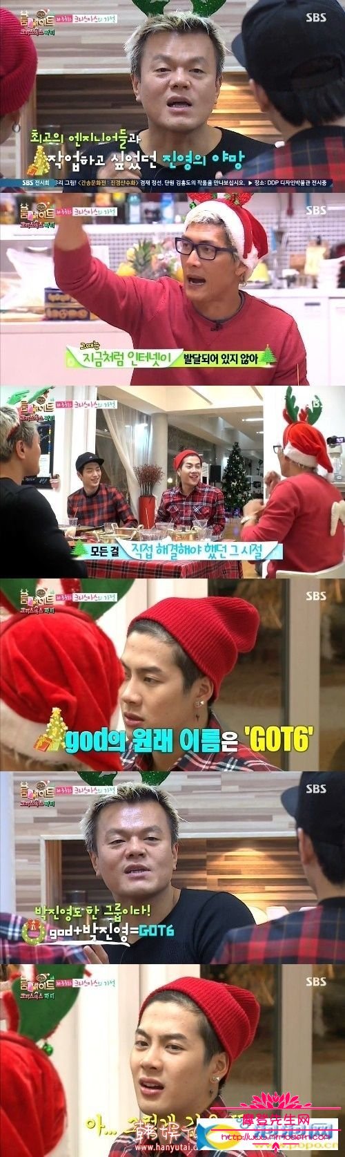 在SBS综艺节目《Roommate》中,朴振英、李国主的至亲白智英、李东旭的妹妹与妹夫、曹世浩的父母、许英智的母亲和亲姐姐以及Jackson的父母都受邀参加了成员们准备的圣诞节Party。