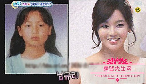 南圭丽整容前照片的曝光,再次印证了韩国女星大多都整过容的说法。对比她整容前和现在的照片,很明显可以看出她至少在眼睛和鼻子上做过“手脚”,皮肤也应该花了不少工夫保养,因为光看两张照片根本想不到是同一个人。