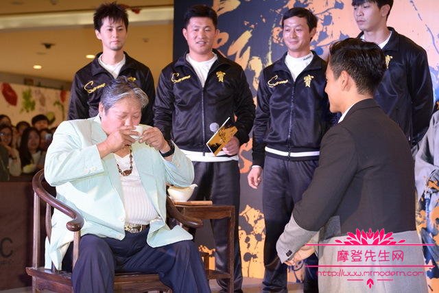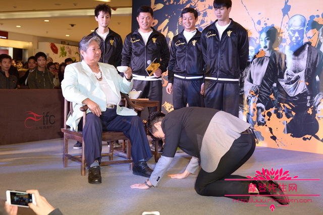 洪金宝率多位洪家班弟子与彭于晏一同现身,他对彭于晏首次拍摄功夫电影的刻苦精神赞赏有加,甚至宣布收彭于晏为徒。整场见面会变成了“拜师大会”,彭于晏在奉茶、三叩首之后正式称呼洪金宝“师父”,“从今天开始,徒弟要称您一声师傅,请受徒弟一拜。”随后再次叩首拜谢表示尊重。洪金宝还送给这位新徒弟“洪家班练功服”,彭于晏倍感欣喜称练功服很暖,心里也很暖。洪金宝感慨道:“一日为师终身为父,我觉得身上的责任更重了,也希望你能够传承功夫。”洪金宝还透露想为彭于晏打造一部电影,趁机训练、教导他。