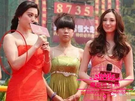 这张是范冰冰刚出道不久,出席商业活动时的照片。服装选得可不好,手和腋下都显得很臃肿。与旁边的吴佩慈相比,气质可是差了一大截。 ![]()