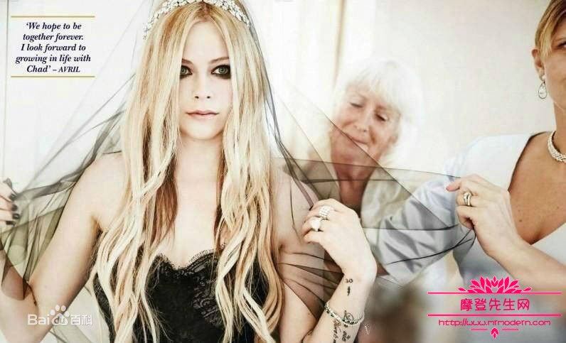 2012年8月8日,Nickelback主唱查德·克罗格向艾薇儿正式求婚,艾薇儿接受了查德的求婚钻戒。8月21日,两人订婚。在这场求婚之后,艾薇儿卖掉了自己在洛杉矶的房子,移居法国[14] 。2014年8月1日,艾薇儿与摇滚乐团“五分钱”主唱查德日前结婚满周年,她爽收老公送的17克拉大钻戒。 ![]()