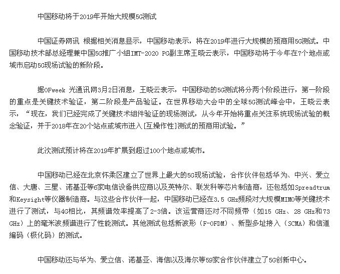 现在智能手机非常普及,与智能手机想对应的是移动互联网的覆盖,而且现在越来越多的移动应用需要更高的网速来实现,为了实现更高网速我国从2G网络发展到了3G、4G,现在5G的标准也已经出炉,据说5G网络一个1G的视频仅仅需要几秒钟就可以下载完毕,速度是现在4G的几十倍,目前5G网络的设备、标准我国的华为公司走在了世界的前列。