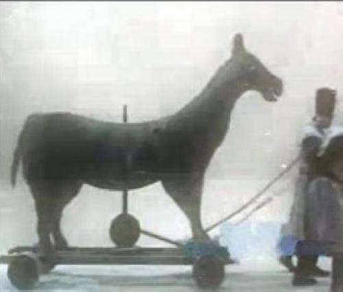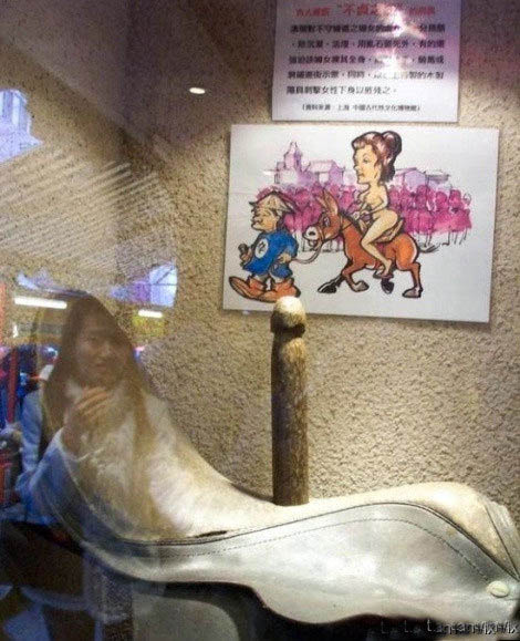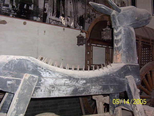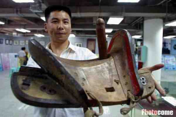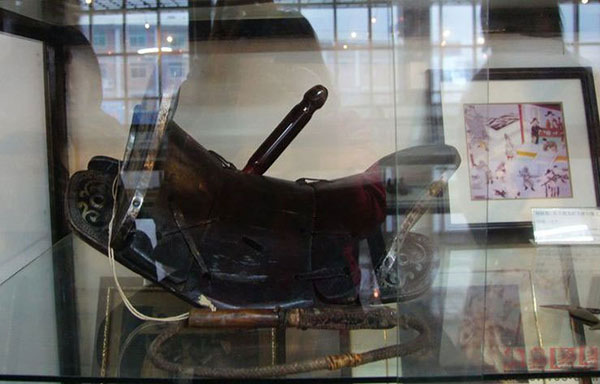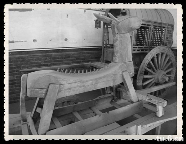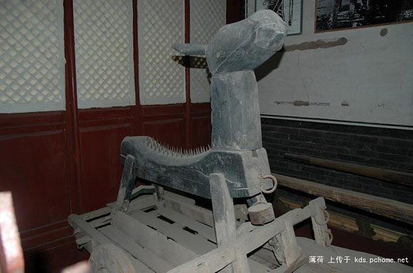 木驴又称刺马,妇女犯“淫罪”,则半赤裸下身绑坐木驴上钉尖,插入女人下身,游街示众,极其残忍。