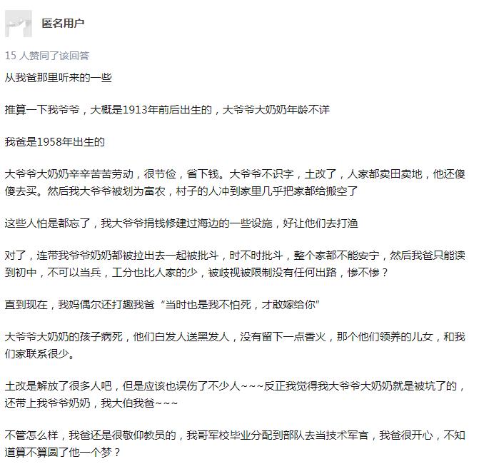 一般来说,这种够得上地主标准的地主阶级,生活还是蛮滋润的,但是并一定多有钱,非常有钱的那叫财主。 鲁迅先生的家以前就是地主,他曾写过一篇文章介绍自己小时候家里的真实生活情况,家道中落后还剩20亩土地,可以够家里十多号人的开销,但是遇到大事也很紧吧。 ![]() ![]() 但是,到了解放后,有一段时间“斗地主”分田地,这里面的很大一部分地主实际上都是普通的老百姓,长期以来因为更勤奋一些,攒下了比其他村民多一些的土地,就被划成了地主。 很多小伙伴的老爷爷、老奶奶,可能都被划成过地主,但是这个地主的实力大打折扣,充其量也就是够吃够喝的水平,没什么钱。 地多一些,农忙的时候,也都是自己劳作,不会请人。 ![]() |