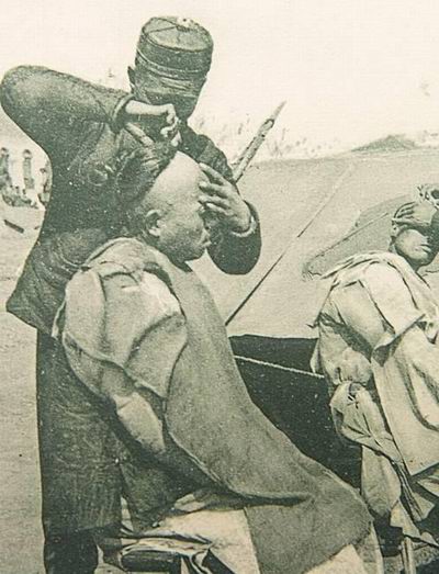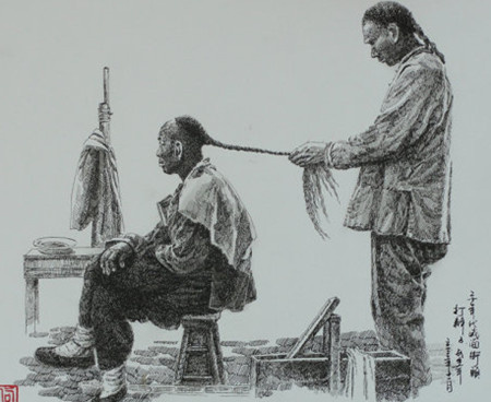 然而实际上历史上真正清朝发式是金钱鼠尾,就是留的发辫要比小拇指还细,要能穿过铜钱中的方孔才算合格,(几乎就是光头)阴阳头是清末才慢慢出现的。 ![]() 留辫本是女真人的风俗。满族乃女真人后代,清军入关后,多尔衮下令所有男人必须依满人习俗,剃发留辫。即把前颅、两鬓的头发全部剃光,后脑勺留下比巴掌小一点面积的头发,编成一条长辫垂下。不从者杀头。由此开始了中国男人二百多年留辫史。 ![]() 太平天国时,洪秀全为反抗清朝统治,实施了严厉的剪辫子运动。太平军所到之处,留辫不留头,留头不留辫。 国内最早提出剪辫倡议的当是康有为。1898年他上书光绪帝,提出剪辫易服的建议,但未被光绪接受。 |