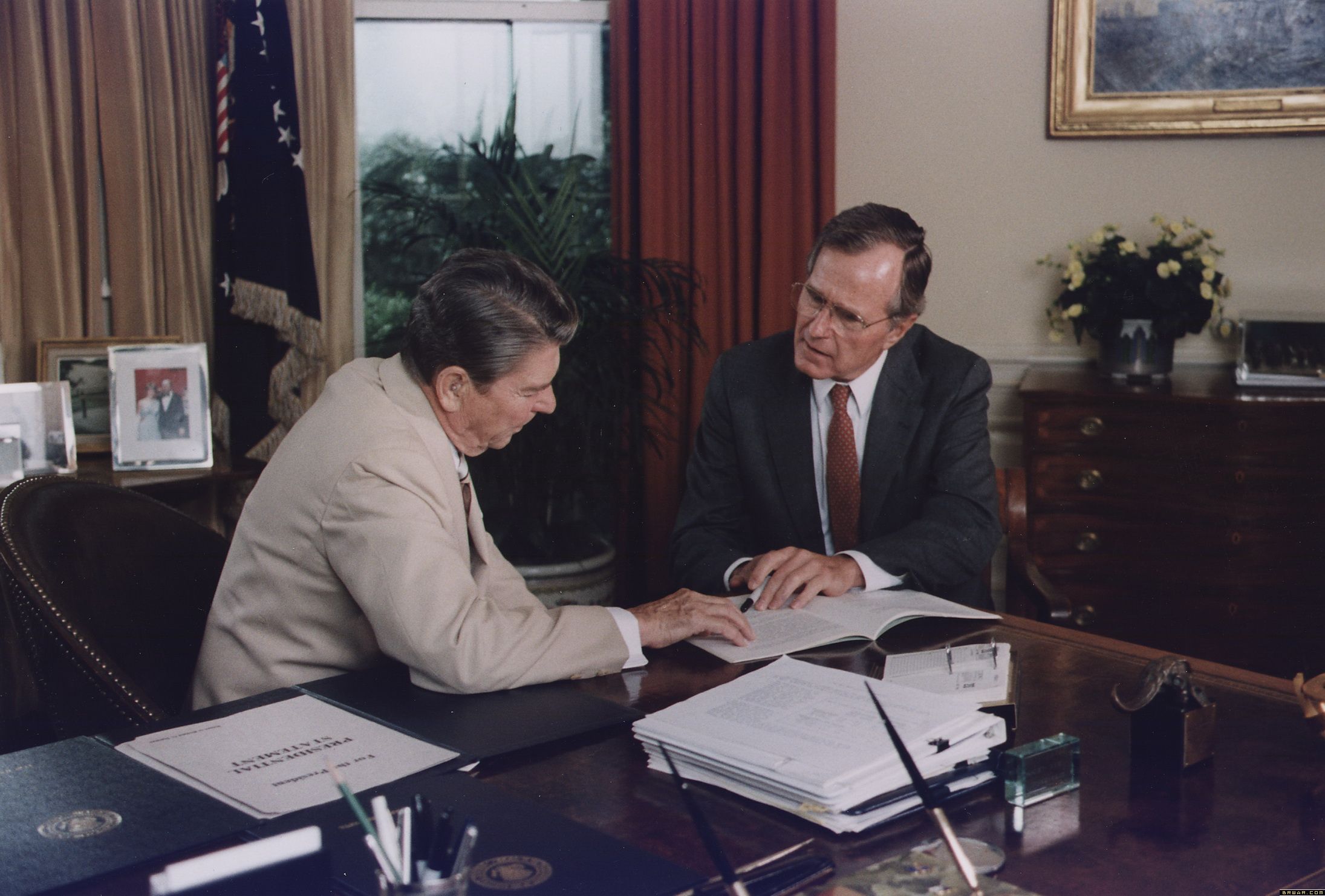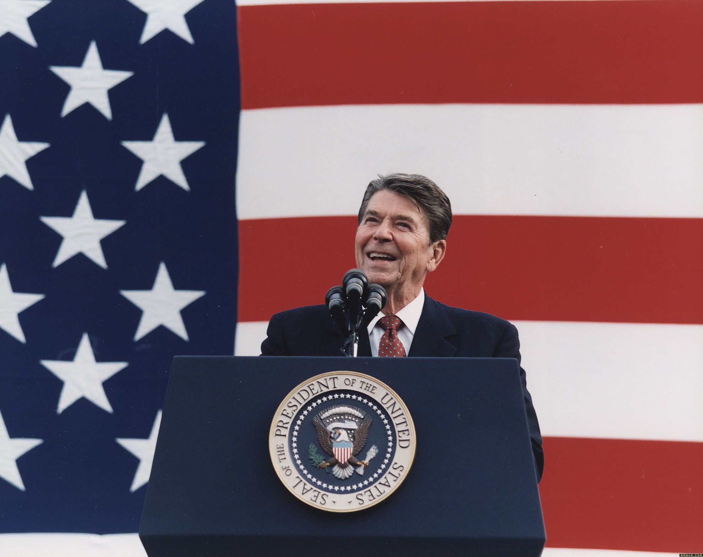 共和党保守派则强调小政府、自由经济、强大国防、坚决反对集权苏联主义。里根则是二十世纪对上述理念的坚持作出了最大贡献的美国总统。尤其在八十年代,他和英国首相撒切尔联手进行了一场充分市场化的经济革命。这场革命不仅为今天的美国经济成长奠定了基础,而且促使整个欧洲向“右”转,朝向市场经济,而非福利社会主义。