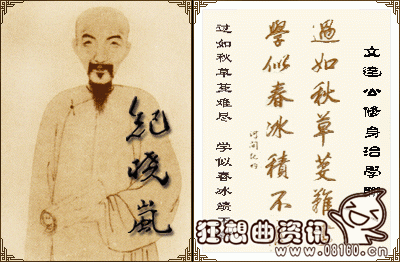 纪晓岚一生才华和学术成就十分突出,他曾给自己写过一首词,其中两句:“浮沉宦海如鸥鸟,生死书丛不老泉”。纪晓岚在清代被公认为文坛泰斗,学界领袖,一代文学宗师,在中国和世界文化史上是一位文化巨人。他一生诙谐、滑稽,机敏多变,才华出众,给后世留下许多趣话,素有“风流才子”和“幽默大师”之称。他是清代著名的学者、诗人、目录学家和小说家。