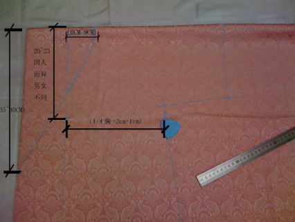 汉服是左衽还是右衽? 右衽(yòu rèn)是汉服始终保留的特点,但并非汉服独有。因此右衽成为汉族的象征符号之一。与之相反,中国古代一些少数民族的服装,前襟向左掩,异于中原一带的右衽,称为左衽。因此左衽用以指受外族的统治。所以孔子说:"管仲相桓公,霸诸侯,一匡天下,民到于今受其赐,微管仲,吾其被发左衽矣。"意思是说要是没有管仲,我们就得沦为异族的奴隶,穿着左衽的衣服,披散着头发。另外,左衽也被用来指死者,在陪葬的壁画和绘画先人的画像中,使用左衽,以示阴阳有别。 ![]() 右衽 2012年10月17日,网友“lishuman”质疑人教版七年级《中国历史(上册)》中屈原所穿服装出现“左衽”失误,该书为2006年6月第2版,引起了众多网友的关注。 ![]() 左衽 经专家网友证实插图确实将右衽误为左衽。人民教育出版社有关人士坦承插图印制有误。经主编齐吉祥调查,原因在于制版工人觉得位于该页接缝处的屈原插图,“调个”面朝左更好看;加之后面的江水不具有正反辨识度,致使屈原插图出现“左衽”。 男生汉服交领半臂怎么做的 以下是男生汉服交领半臂的制作过程。 这里举例的半臂尺寸是衣长50,胸围85,袖长15。 1、首先是材料的准备,要准备好尺子,划粉,剪刀,衣缘的材料,衣服的主料。 2、然后把面料对折平铺,汉服制作大都是对称裁剪,在摆布的时候要注意是顺着布料的纹路来摆,因为根据织物的纺织方法不同它的横向和纵向的延展性是不同的,会影响到成衣的版型。 3、然后我们先把衣服的中线定下来,交领的衣服,通过系带来调控它的合体性的,所以中线偏离边线一段尺寸。计算工式是(1/4胸围-10~12) 4. 然后就是定胸线的宽度从中线偏离(1/4胸+2cm+1cm)胸线的高度就因人而异了,男女又各有不同,这里的胸线高度是20。定出这个点,做个标记。然后就是领口的大小。领口的宽度我个人经验是6CM~9CM之间,根据领子的大小,及做法不同,尺寸又有不同。而最关键的是领子下面这个点的位置,它直接影响到领子的合体与否。我个人认为在肩线以下35~40CM是最佳尺寸。把这两个点连接起来,在胸线这个点偏移1CM然后画成一个弧线(因为人体是个椭圆,为了更合体)。 ![]() 5. 接下来,就到衣下摆,区区以为,人体在腰部以下是尺寸是逐渐放大臀围是略大于胸围的(当然这也是因人而异的)所以衣下摆的点就定得略大一些,然后再定下衣袖的长度,因为上臂要经常活动的,所以袖笼就是肩部袖口的大小最后不要低于20CM。需要注意两点,一是腋下最好有个弧度,这样成衣的版型会比较合体不生硬。二是,衣摆摆大概上移1CM把它剪成小小的弧,这样会更贴身。 6. 衣服的裁剪定位就差不多完成了。那就少废话开剪吧。对称裁剪的好处就是几剪刀就可以完成。先把外部轮廓按照线的痕迹剪出来,然后把领口的后片开口剪下来(比肩线低1.5至2CM,别下狠手挖太深了,记得那个弧要挖顺点,它直接影响到你的领子会不会服贴的贴在颈部,一定一定要记住,脖子是圆的),再来就是把折叠的布从中间剪开,把第一层的前片的弧剪出来,接着把布摊开,把第二层和第三层的布料划出中线剪出来,再接着把布料按照前对前,后对后的方法把左右片的衣料对齐放好,再把下面的领子挖出来。怎么样,很轻松就可以剪出来了吧。 7. 衣服的主体剪好了,我们开始剪衣缘。用软尺延衣领的弧度量好领缘需要的长度再加上车缝的尺寸(一般是两头各1CM)。剪出衣缘来,再剪纸衬,别小看这薄薄的一层棉纸,它可以保证你的衣领可以很硬挺很服贴而不是邹巴巴的一团。在烫板上用高温把纸衬烫在衣缘的背后,再把衣缘对称烫定型,这里有个小窍门,要想以后车的时候更轻松,可以先在烫板上把两边的车缝都烫出来,大概一指宽吧。 8、我们开始车衣服了。把裁好片的衣料正对正反面向上,先把背后两片合在一起,然后再从袖口开始合衣服,合到掖下的时候要慢慢的沿着弧度车,不要心急,车好后记得打剪口,不然穿起来很生硬的。但不是车到底喔,记得留十公分以上的分缝。 9.、完成这一部,接下来就是袖口和衣缘的收边了。把衣边朝里折两折,把得毛边包在里面,然后开始车一条线压边,这里要注意保持匀速匀距,这就需要一定的熟练程度和技巧了。 10. 首先,车四条小带子,记住留一边不车,车好后,把它翻过来,待用,这就是衣服的系带了。然后,把烫好的衣缘和主体衣料的外缘对齐,先从外面车一道线定位。然后把衣缘对齐车缝,用珠针在里面先固定几个点,这点很关键对于新手来说,要车好一道弧线不变形还真有难度的。这是上好一条领子最关键的技巧。定好位之后,在收口处预留1公分的车缝剪掉。 11. 然后,把衣缘反过来对折,把刚才备用的系带夹在中间车一道线。衣缘两头都是如此。翻过来,就可以沿着事先烫的好车边开始把主料边包在衣缘里。这时按照事先珠针的定位,一小段一小段的车,小心的调整布料的松紧,摆平整。最后,用划粉把对应的系带位置标出来,开始最后的工序,上系带,先逆着系带方向反复车一道线,然后再折过来再车一道线,这样就非常的稳定了。 ![]()
