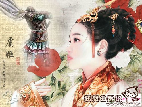 《史记》中也没有说项羽和虞姬爱情专一,他俩的爱情恐怕是后来文人们编戏文的时候借古人的名头杜撰的吧!看来项羽“情义”男人的形象值得拷问!虞姬是个“姬”,并非正妻,以项羽的身份,应该是有妻的,所以有一点可以肯定,项羽不只虞一个女人,虞也不是他最重要的女人,不然为什么不封为妻?还只是个姬?姬的地位应该和刘邦的戚夫人差不多,一个被项羽宠爱的女人而已,在项羽死的时候恰在他身边,于是阴错阳差被后来文人(主要是编话本的文人)塑造成了爱情的女主角。他最后怎么死的谁也没看到,也许被项羽杀了,也许自杀了。崇祯死时先杀了儿女,皇后和后姬自杀了,封建社会就这样,不值得大惊小怪。据秦制,“美人”是仅次“皇后”/“夫人”的第三品爵位。