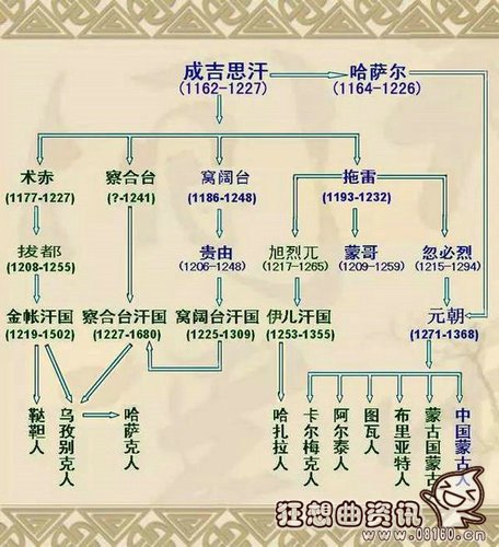 除了这些记载在列的女子之外,成吉思汗一生有无数个女人。据说他征战各地的时候,曾经默许过部下每到一地就选送美人给他,所以他最后才能留下那么多的后裔。可以说成吉思汗的血统,简直是遍地开花。