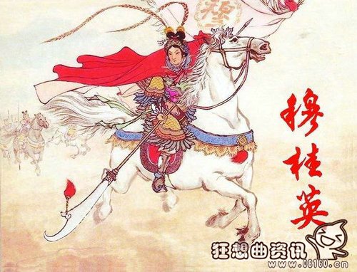 穆桂英原为穆柯寨穆羽之女,武艺超群、机智勇敢,传说有神女传授神箭飞刀之术。因阵前与杨宗保交战,穆桂英生擒宗保并招之成亲,归于杨家将之列,为杨门女将中的杰出人物。穆桂英与杨家将一起征战卫国,屡建战功。佘太君(佘赛花)百岁挂帅,率十二寡妇西征,穆桂英五十三岁犹挂先锋印,深入险境,力战番将,大获全胜,是中国通俗文学中巾帼英雄的典型形象。