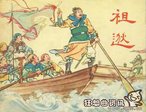 祖逖,范阳遒县(今河北涞水)人,字士稚。祖逖自幼胸怀大志,为练就了一身好本领,与好友刘琨“闻鸡而起舞”。西晋末年,“五胡十六国”混战中原,流亡到南方的祖逖于313年渡江北伐,船到江心的时候,祖逖拿着船桨,拍打船舷发誓说:“我祖逖如果不能扫平占领中原的敌人,决不再过这条大江。”辞色壮烈,部众莫不慨叹。这就是著名的“中流击楫”之誓。当时,河南坞主各拥兵自重,相互攻击,他派人招抚,共御石勒。蓬陂坞主陈川投石勒,祖逖率军伐陈,勒遣石虎领兵五万救援,祖逖以奇兵击退。石勒统治的地方多归附祖逖,九年即收复黄河以南的大部土地。321年,正当他在虎牢关秣马厉兵,积蓄力量,准备向北推进时,东晋王朝内部矛盾激化,王敦擅政,晋元帝司马睿派戴渊为征西将军,以监督祖逖。祖逖看到北伐难成,忧愤死于雍丘,享年56岁。