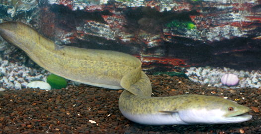 花鳗鲡(学名:Anguilla marmorata,英文名:Marbled eel)属鳗鲡目鳗鲡科。它是鳗鲡类中体型较大的一种,体长一般为331~615毫米,体重250克左右,但最重的可达30千克以上。身体粗壮,腹鳍以前的躯体呈圆筒,后部稍侧扁,总体看来身体延长呈棒状,很像硕大的鳝鱼,所以俗称其为“鳝王”。濒危等级:濒危,是中国国家Ⅱ级保护野生动物。