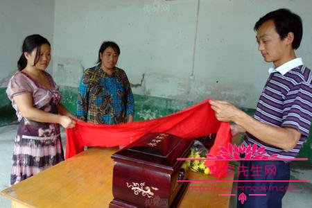 据说骨灰盒用红布包的原因是醒目和辟邪。包的方法如下,很简单: