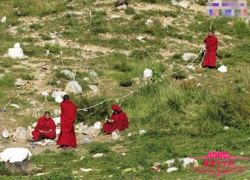 天葬场多数是在离寺不远的山腰上,这些山腰都是较有名的。有的天葬场有一块大而平整的岩石,有的天葬场仅是一堆石块,有专门从事天葬的僧人,被称为天葬师。
