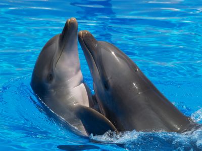 海豚是海洋中最聪明的生物,据说海豚的智商可以赶上人类三四岁的孩子,他们有自己独特的语言,可以成群的一起交流,并且围捕猎物,正是因为如此,海豚虽然体型不大,但是绝对是海洋中令任何敌人都敬畏的对手,包括鲨鱼也对海豚敬畏三分!