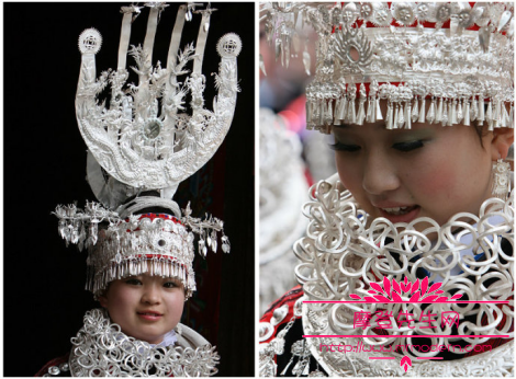 苗家人一生中用银处极多,尤其女性更胜,主要有四项: 一、是青年男女定情,男方要送女方银镯、耳环等作信物,而在正式出嫁时如男方送不足一定银两则不能成婚。 二、是苗家孩童是父母希望所在,其银饰的头帽、手镯、脚钏、银铃响物、罗汉菩萨等,全是新买银子做成。为求“长命富贵,驱鬼避邪”,苗人从少年乃至中年,在手、脚、耳等处均系上适量的祀保银钏。 三、是日常家珍饰银、存银又是苗家富有的象征。日常生活中,用银子来进行馈赠也是常事。 是给老年人祝寿或送葬都离不开银子或银饰物,常有些老人,生前将银私藏,死后无人知晓。至今,湘黔边区的苗族同胞用银数量有增无减。  |