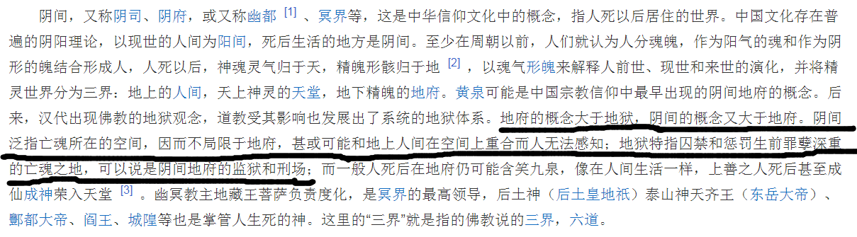 ![]() 九在古代一直是“极”数,古人就把这个单数中最大的数字延伸,有极深、极远的意思,代表着一种极限的状态,比如说九霄、九泉等,而泉是泉水的意思,因为古代人们都是从地下挖井取水的,挖的越深,水就会越多,这种混合着土的水一开始是金色的,所以古人认为越是深入地下,水就会越多,因此最深的地方被叫做九泉。那么九泉和阴间是什么关系? ![]() 而九泉是阴间的另一种说法,在古代,人们普遍认为死后就会去阴间,而这个阴间会离地面很远很远,是遥不可及的,就像挖井一样,无论怎么挖都达不到尽头,而泉水和井水古人是分不清的,以为是一样的,所以就把地下水叫做泉水,九被认为是极阴指数,而泉也有黄泉的意思,所以九泉就指代阴间。 ![]() 阴间是很笼统的说法,很多人都以为阴间和地狱是一样的地方,其实并非如此,阴间和地狱还是有区别的,在中国古代,人死后灵魂不会消亡,会进入阴间,而地狱则是宗教演化的一个惩罚坏人和恶人的地方,可以说是阴间的监狱和惩罚场所,所以阴间的概念是大于地狱的,它们不算是一个地方,但地狱包括在阴间里面。 ![]()  |