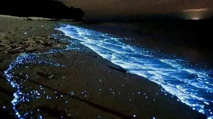 六月份天气热的时候,坛南湾就会出现一个奇景,靠近海岸线的位置会展现出一片神秘的幽蓝,白光点点似银河也似极光。美的炫目也美得静谧。若是在沙滩上散步,用力一踏步,周围就会向电影《阿凡达》中的生命树一样发出奇妙的荧光。若是海浪大一点,那点点的荧光被浪花拍卷到空中,就像飞舞的萤火虫。这样的美景成功的吸引了大批的游客和摄影爱好者。我们看过《蓝血人》、《阿凡达》等奇幻电影。但是现实生活中还是第一次见到这样的奇景,有人给它命名为“蓝眼泪”,蓝眼泪是怎么形成的呢?