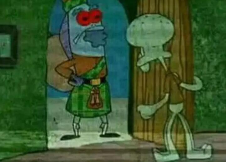 在一集中,章鱼哥本来在家练习吹笛子,但是一个苏格兰打扮的人出现在他的门口,双眼是令人害怕的红色,加上诡异的色调看起来非常恐怖。后来章鱼哥练习好的笛子,便举办了自己的演奏会。