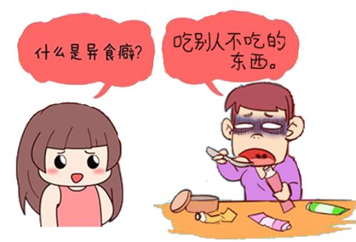 另外些病态的孩子如寄生虫,蛔虫症,嗜吃泥土,墙皮,大便秘结或腹泻,大便中可见虫卵,还有钩虫病,脸黄,唇,甲均苍白,消瘦,疲劳乏力,食欲不好,腹胀,腹痛 ,此外有些维生素缺乏也可致异食症,如缺锌,不仅有嗜食异物行为还可有舌炎,口炎,影响生长发育,还可有异食,多动,注意力不集中等行为异常。 该病的治疗需要父母经常注意儿童身心健康所需的基本条件,如提供全面营养,养成良好的饮食习惯,不挑食,不偏食。父母每天下班后要有足够的时间和儿童亲昵、玩耍,以满足他们情感及心理上的需求,以免他们向不正常的方面去寻求刺激和安慰。对严重病例,要带他们去看心理医生,服用适量改善情绪的药物。
