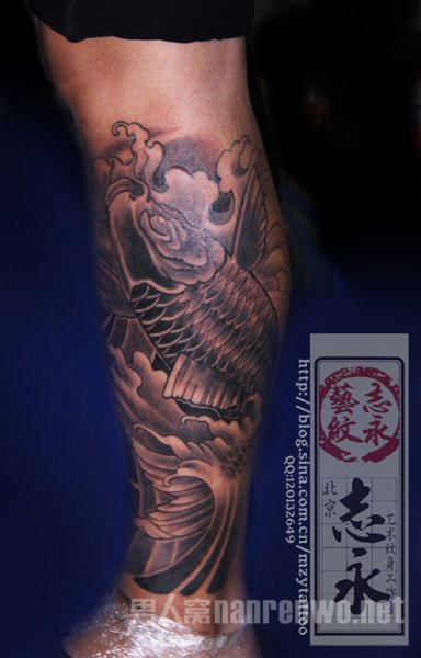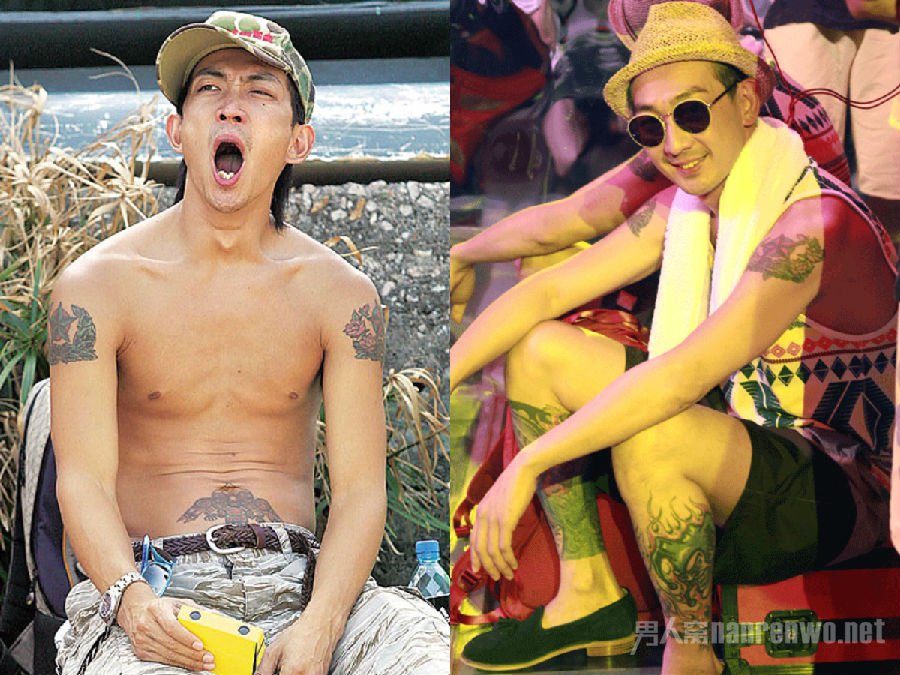 左腿上的魔鬼纹身代表他曾经加入的乐队,右腿上是好大一条锦鲤求好运的。