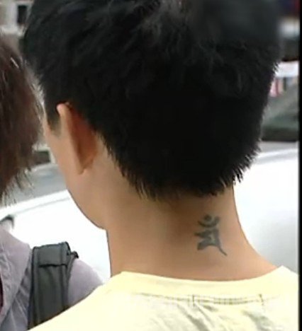 颈后的这个纹身是梵文,意思是文殊菩萨,也就是属兔的守护神。李灿森是1975年出生的,属兔。