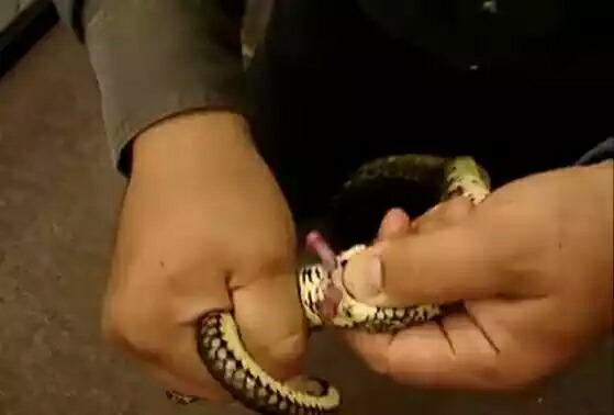 蛇为什么有两个丁丁? 很多蛇类和爬行类的动物都是长了2个丁丁的,都是在靠近足的位置长出来的。 科学家证实生殖器官都是从泄殖腔的胚胎组织分化而来,蛇的泄殖腔的胚胎组织向他周围的细胞发出信号,这些信号就是要制造生殖器的,而且一下子就制造了2个,为什么泄殖腔的胚胎组织要发出这样的信号,科学家正在研究! 蛇的丁丁样子和交配方式图: 懂行的人,只要用力一挤就可以挤出蛇的两个丁丁,如下图 ![]() 下面是一条公蛇和母蛇在交配,过程还以为是两条蛇在打架 ![]() 缠绕在了一起