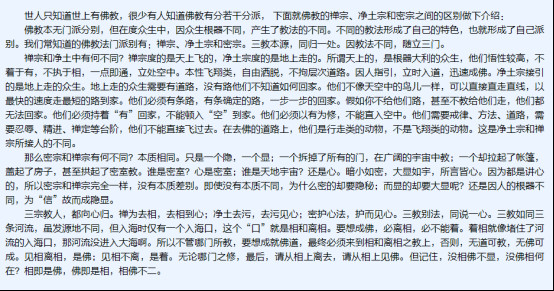 国清寺是不是禅宗祖庭? 禅宗祖庭有很多,如最为出名的嵩山少林寺,还有广东南华寺、湖北黄梅五祖寺、安徽天柱山山谷寺、湖北黄梅四祖寺等等,但是国清寺并不是禅宗祖庭,而是佛教的另一个宗派——天台宗的发源地,在公元598年的隋朝初期就已经创建,后来日本僧人朝拜国清寺,并称国清寺为祖庭。 ![]()   禅宗和密宗有什么区别 佛教分为多个教派,包含八大宗教,而禅宗、密宗就是佛教其中的两个分派。这两个分派的区别是: 禅宗的教宗是一个广阔的立足于宇宙之间,大无我境界。而密宗则认为人有根器的差别,所以要建立一个自己的密室(心房)这个心房可以细如针尖,也可广阔如宇宙。所以说,虽然他们一个讲究的是显露,一个讲究的是隐于心,但是他们并没有本质的区别,      |