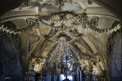 在欧洲许多国家,有一个非常恐怖的地方叫--人骨教堂。人骨!听起来就让人毛骨悚然!其中最具代表性的人骨教堂位于捷克的——布拉格人骨教堂,坐落在捷克的银矿小镇——库特纳霍拉。从外表看去,只是一座具有哥特式风格的建筑,走进去你就会惊人的发现,里面的建筑物都是用人骨做成的。教堂的墙壁、天花板上挂满了人骨装饰品。与其说是人骨教堂,不如说是人骨博物馆更贴切。