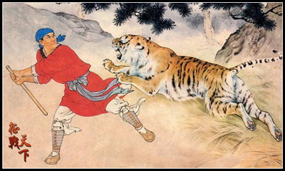 武松是因为在景阳冈赤手空拳打死猛虎一事而闻名江湖的,而在打虎的整个过程中,我们无法否定武松的英勇善斗以及面对猛虎时所表现出的临危不乱。平常人喝醉酒后就会坏事,但是酒却能成为武松办事稳握胜券的能量剂。例如,在武松打虎之前,他就在一间酒店里前后总共吃了十五碗酒,他明知道当地有“三碗不过冈”的说法,但是他却执意要喝,可见,那酒醉打虎之事简直就是不可思议的。甚至武松本人也认为:“若不是酒醉后了胆大,景阳冈上如何打得这只大虫!那时节,我须烂醉了好下手。又有力,又有势。”除此以外,还有醉打蒋门神—事——在武松与施恩出发去找蒋门神报仇的路上,武松则要求每当遇到一间酒店就要让他喝三碗酒后再走。