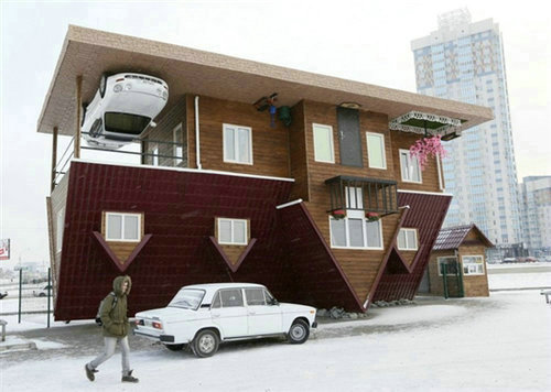 在俄罗斯的某个地区,有一栋上下颠倒式的房子,在这样的房子中生活,很容易让人精神错乱,毕竟这像是个完全违背重力定律的空间,非常考验人的意志力。