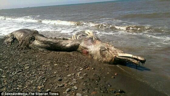 1934年的夏天,营口阴雨连绵,持续下了40多天的大雨,辽河水暴涨,辽河北岸的芦苇塘变成了一片汪洋,鱼虾漂浮在水面上,空气中飘散着一股强烈的腥臭味道。大雨过后,当时生活在辽河北岸的人们都能闻到苇塘内的腐臭气味,但却始终搞不清楚究竟是什么原因。一天,一个看管苇塘的人顺着味道走去,在他扒开芦苇时,惊奇地发现在芦苇塘中竟然有一巨大怪物的尸骸。看苇塘人惶恐不安,慌慌慌张张地拔腿就往回家跑,据说到家后他一头扎到炕上,从此一病不起。当地一些上了年纪的老人回忆说,这个怪物曾经出现过两次,第一次出现在距离入海口20公里处。