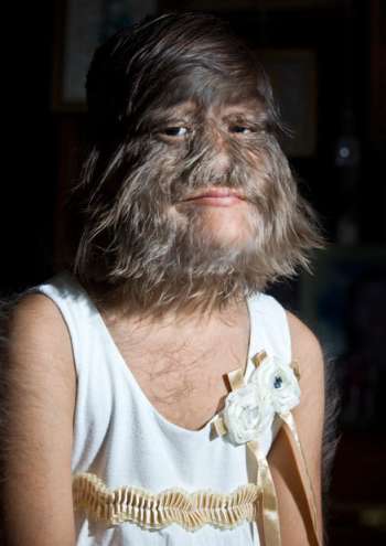 那两个女孩不会和人一样走路,而是四肢着地,象松鼠般机灵地四处跑动,据辛格讲,她们那目光锐利的蓝眼睛,黑暗中能象狼眼似的闪闪发光。辛格后来还说,这两个孩子刚被找到的时候,一直是“象狼一样舔食东西”;再热也不淌汗,而是象狗一般地张大嘴巴喘气,借以散热降温。她们老是撕掉身上的衣服,害怕光亮;白天萎靡不振,午夜之后却变得十分活跃。她们不肯吃人类的饭食,而动物尸体和肉类那怕藏而不露,她们也能凭气味寻获,贪婪地大口吞食。她们不会人言,仅仅在夜阑人静后,不时发出阵阵长嗥。